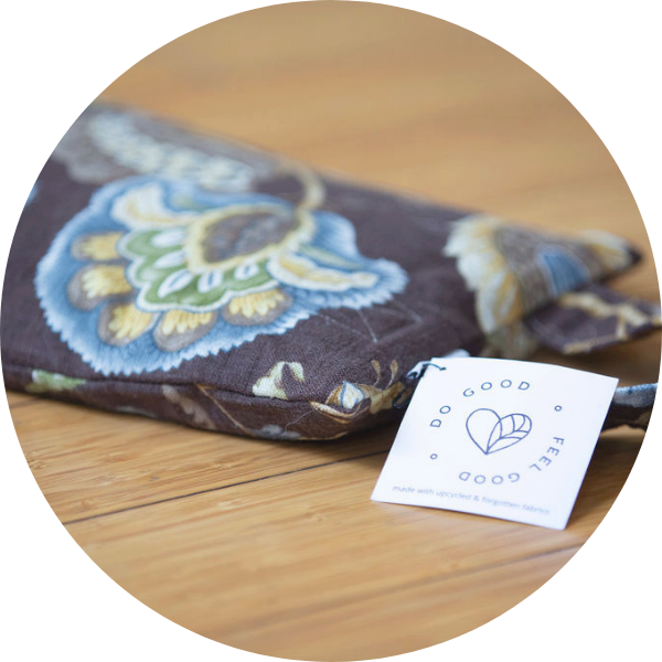 The unique covers are handmade by local women with repurposed fabrics that are removable and machine washable.